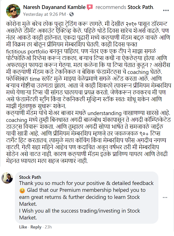 Grow your money with Kalyani Wadnere by TRADING & INVESTING in Stock Market